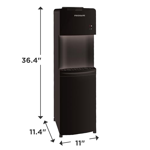 If you re looking for a top loading cooler dispenser that is sleek and space saving, the Frigidaire EFWC498 Top Loading Cooler Dispenser is the perfect choice. It has an innovative design that looks great in any space, whether its your home, office, dorm room, or anywhere else. This freestanding dispenser is compatible with 3 and 5 gallon water bottles not included . It has two push buttons for easy operation and two separate cold and hot water spigots for convenient use.